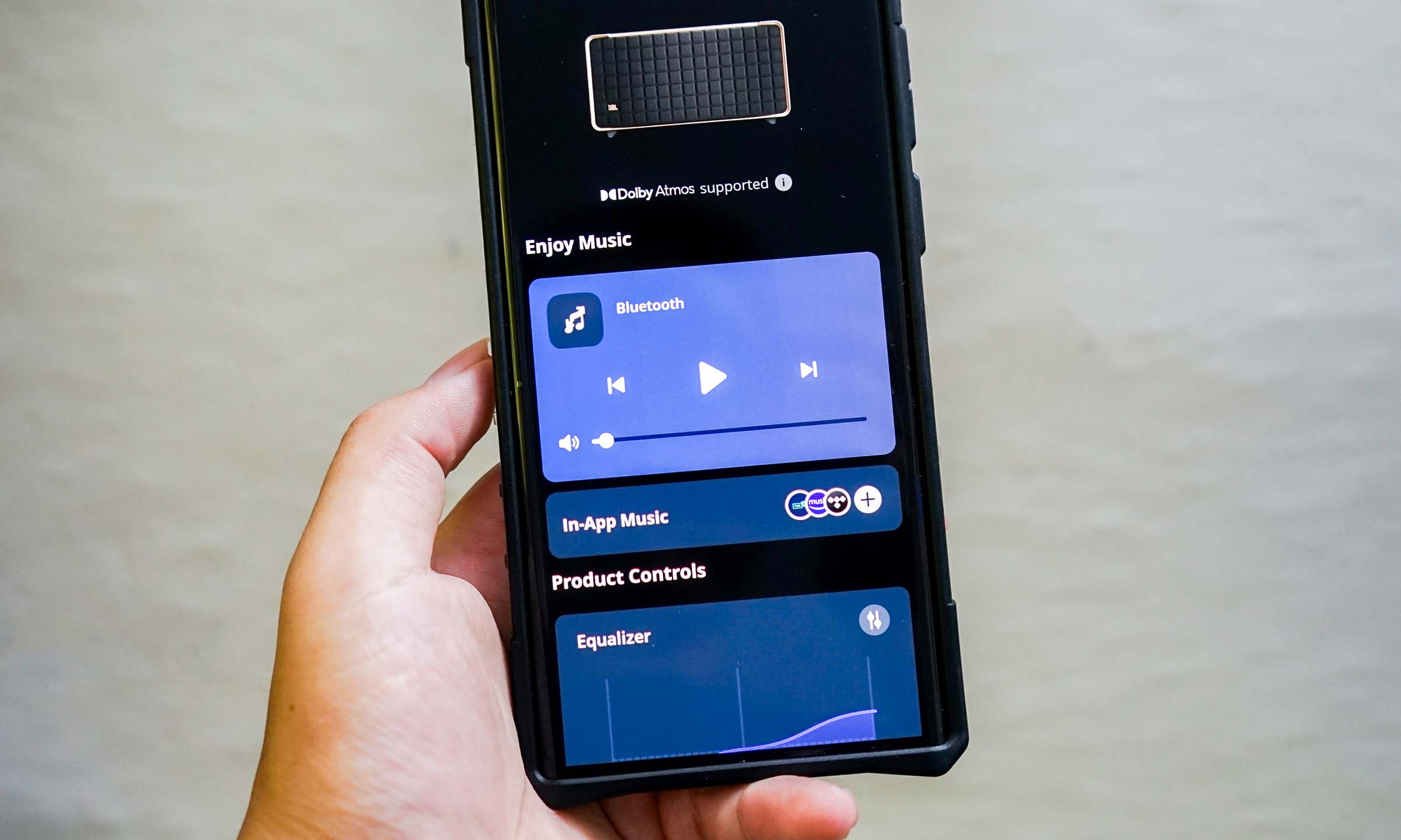 Loa đi kèm ứng dụng JBL One, mang đến nhiều tiện ích cho người dùng. Ứng dụng cho phép bạn dễ dàng bật các dịch vụ nhạc yêu thích, điều chỉnh Equalizer để tối ưu hóa chất âm theo sở thích và kết nối âm thanh đa phòng nếu sở hữu hai hoặc nhiều loa JBL Authentics 500. Giao diện ứng dụng trực quan, dễ sử dụng.