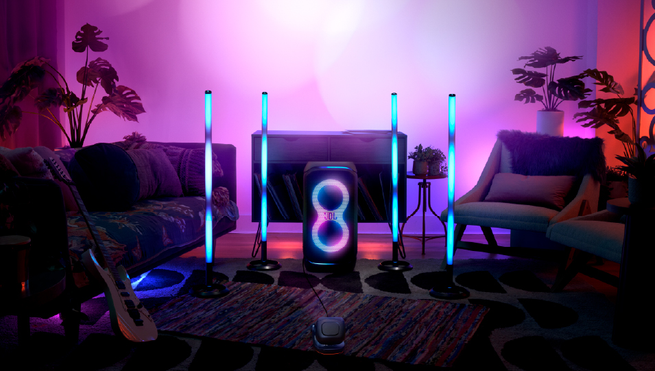 Để tận hưởng trải nghiệm ánh sáng sống động và hoành tráng nhất, hãy kết nối thêm nhiều đèn JBL PartyLight Sticks với loa JBL PartyBox của bạn.