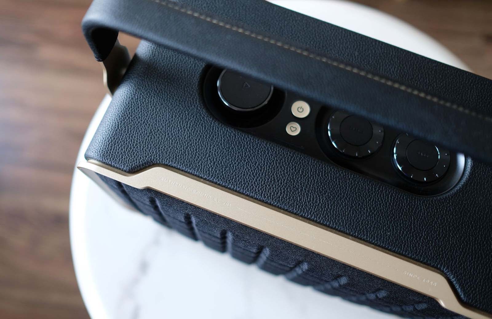 Mặt trên loa được bố trí các nút điều khiển trực quan, bao gồm nút nguồn, nút ghép nối Bluetooth, nút phát nhanh playlist, núm xoay chỉnh âm lượng tổng thể và hai núm xoay điều chỉnh âm treble và bass riêng biệt, mang đến trải nghiệm điều chỉnh âm thanh đồng bộ và mượt mà. Các nút bấm có tốc độ phản hồi nhanh chóng, đảm bảo thao tác chính xác.
