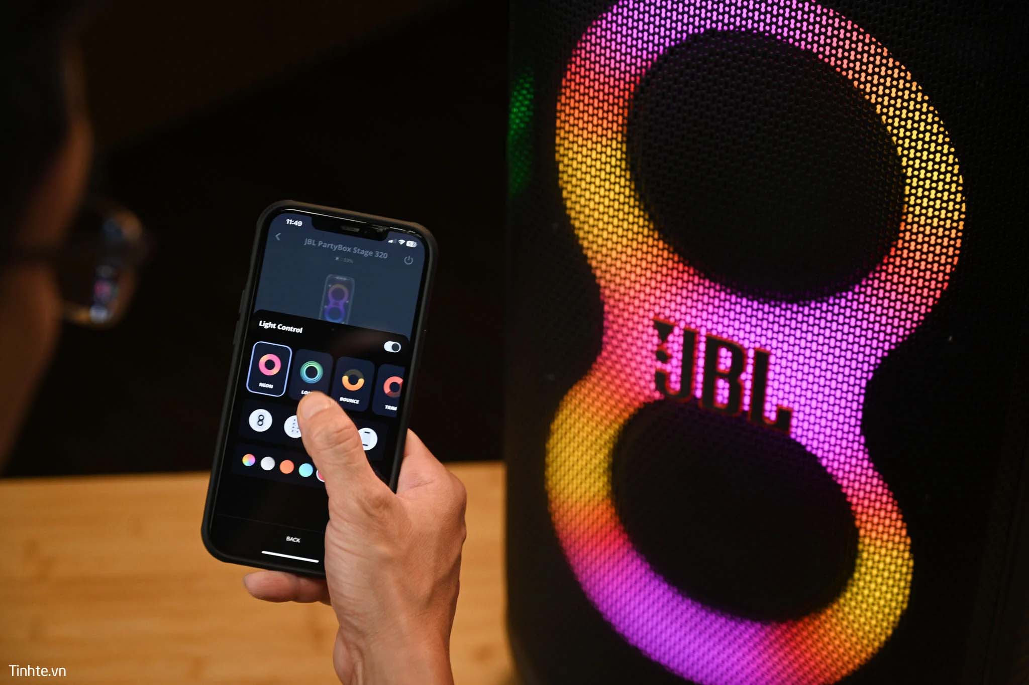 Anh em có thể tải thêm cái app là JBL PartyBox để can thiệp và tinh chỉnh sâu hơn đối với loa Stage 320. Nói chung trong app có nhiều mục, chỉnh đèn, chỉnh hiệu ứng, cá nhân hóa nút bấm....