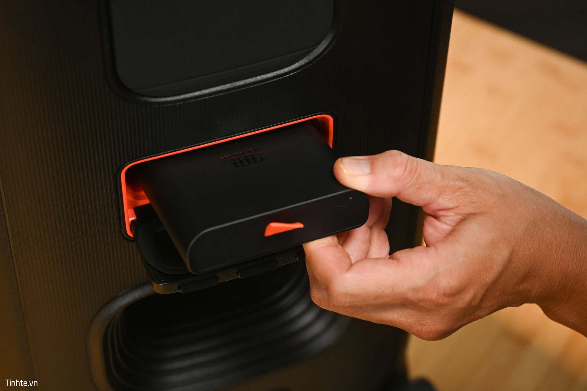 Loa JBL PartyBox Stage 320 cho phép bạn chơi nhạc lâu dài bền bỉ với thời lượng pin lên đến 18 giờ và có thể thay pin rời tiện lợi.